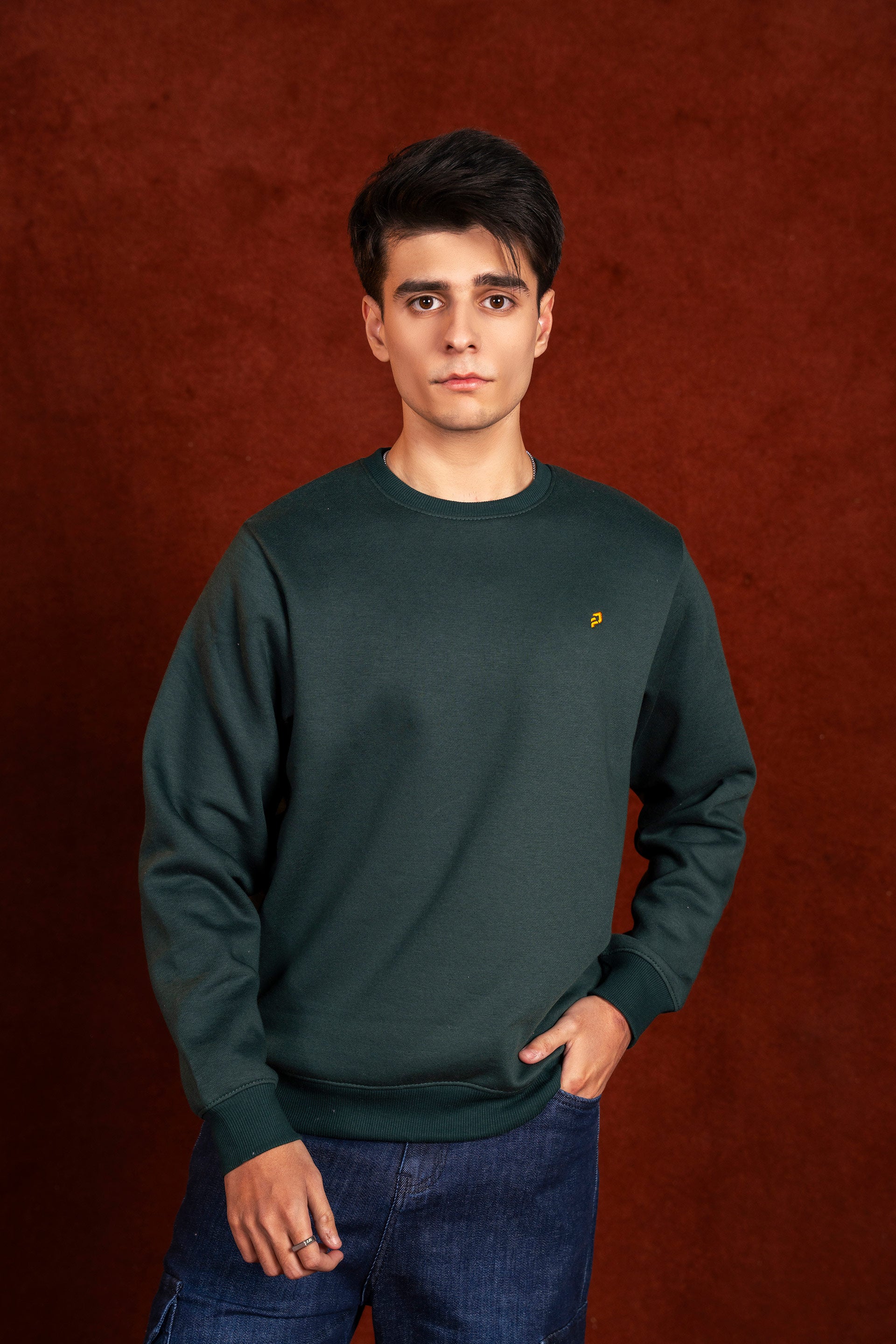 - Men Crew Neck Green Sweatshirt Bold, unapologetic style meets everyday comfort in this striking green crew neck sweatshirt.
