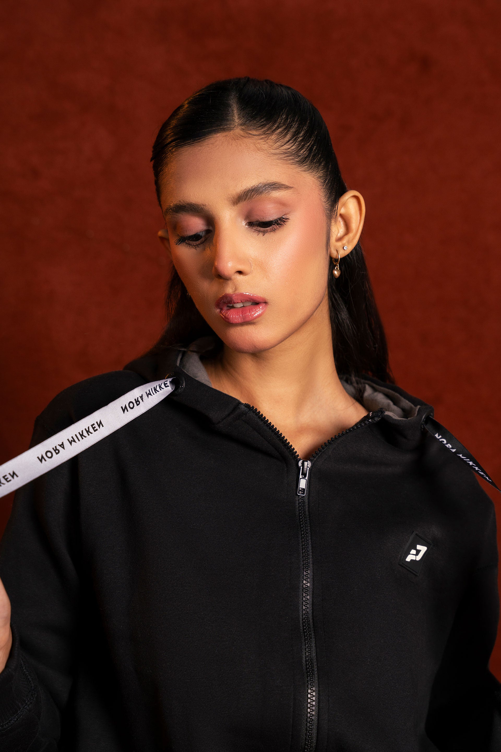 - Stay bold in this sleek black crop hoodie designed for those who refuse to play it safe.