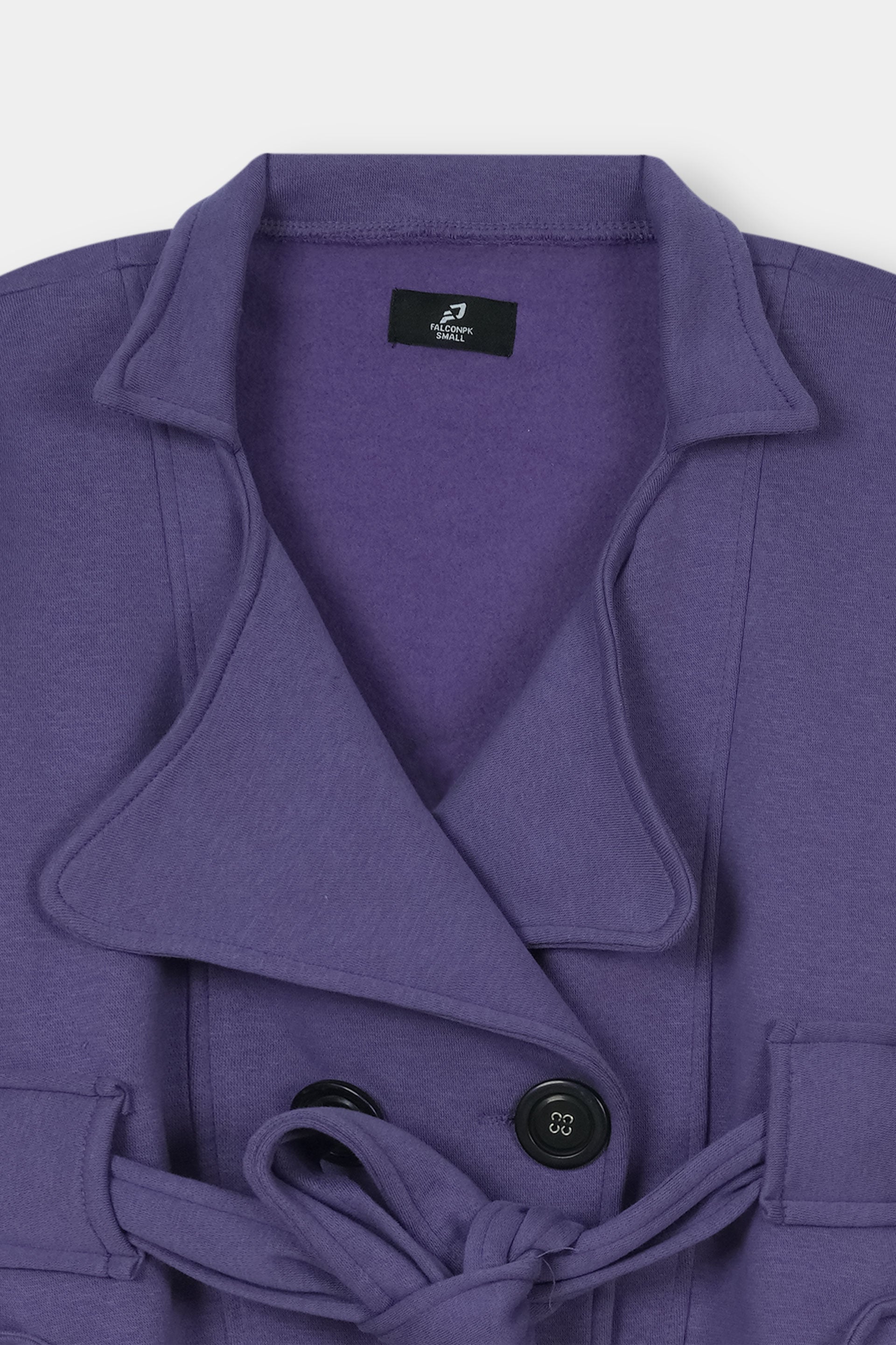 - Make a daring entrance in this striking soft purple short trench coat that refuses to play it safe.