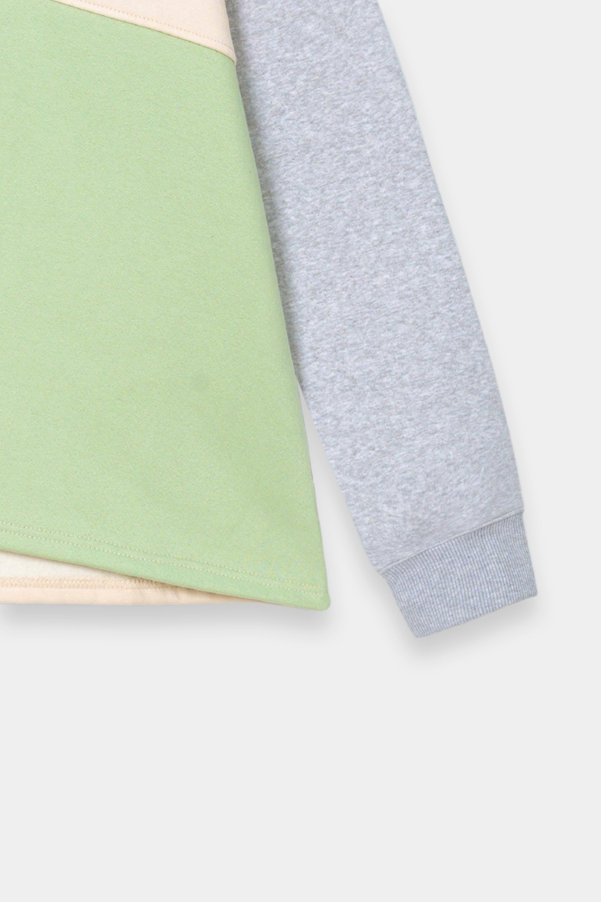Make a fearless fashion statement with this Women Block Textured Crew Neck Sweatshirt, showcasing audacious color blocking in beige, sage green, off-white, and grey.