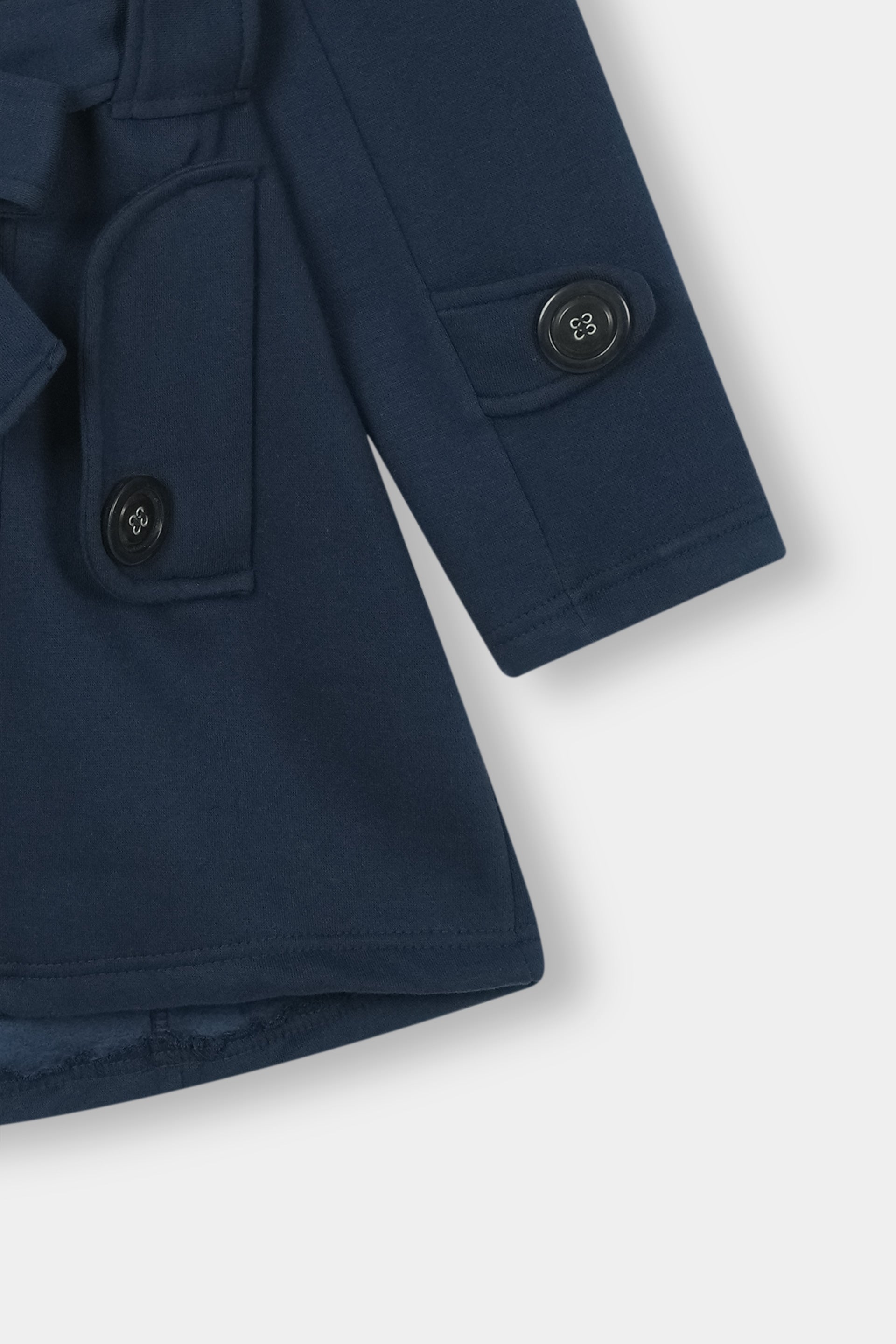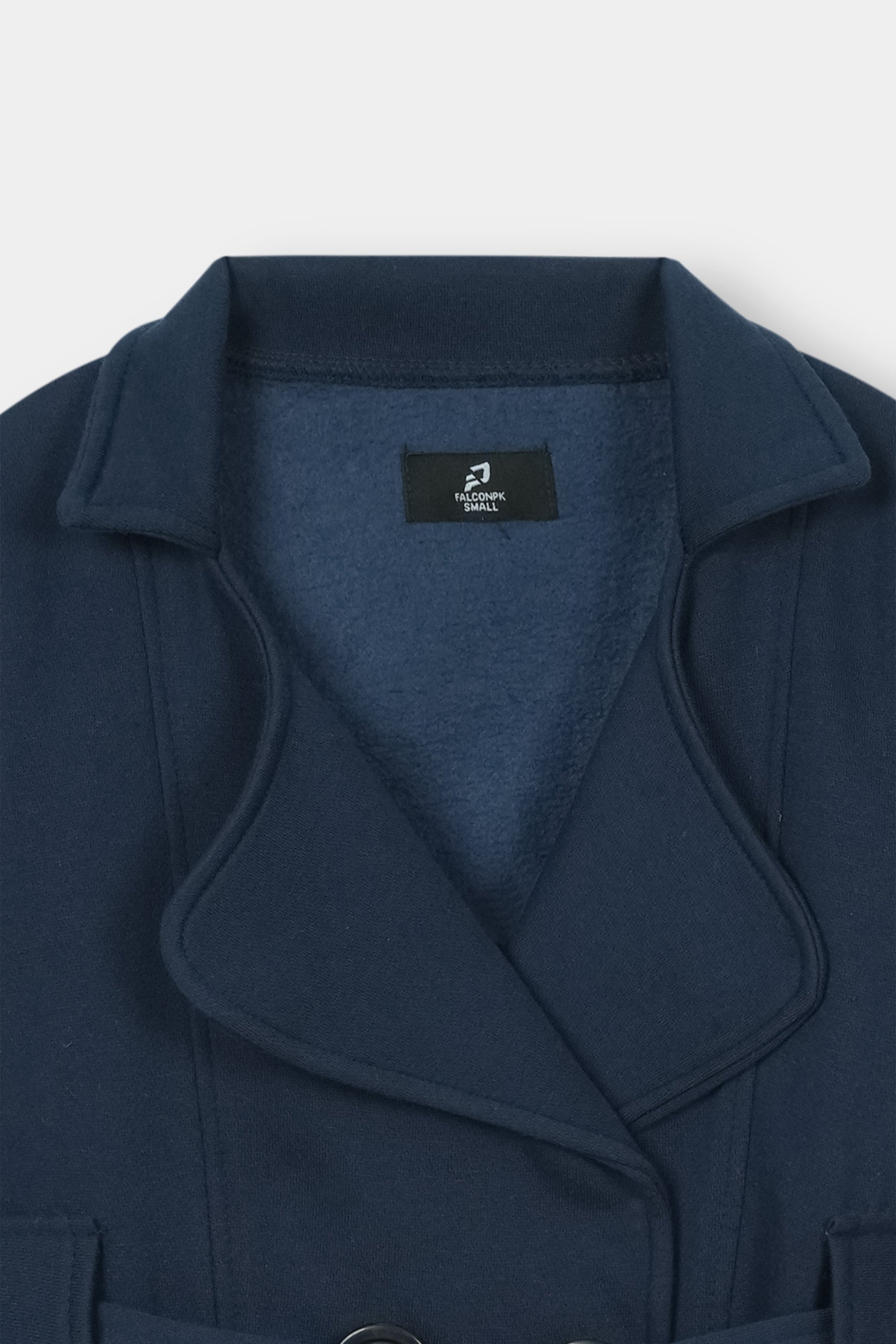 - Turn heads in this fearless blue short trench coat that shatters expectations.