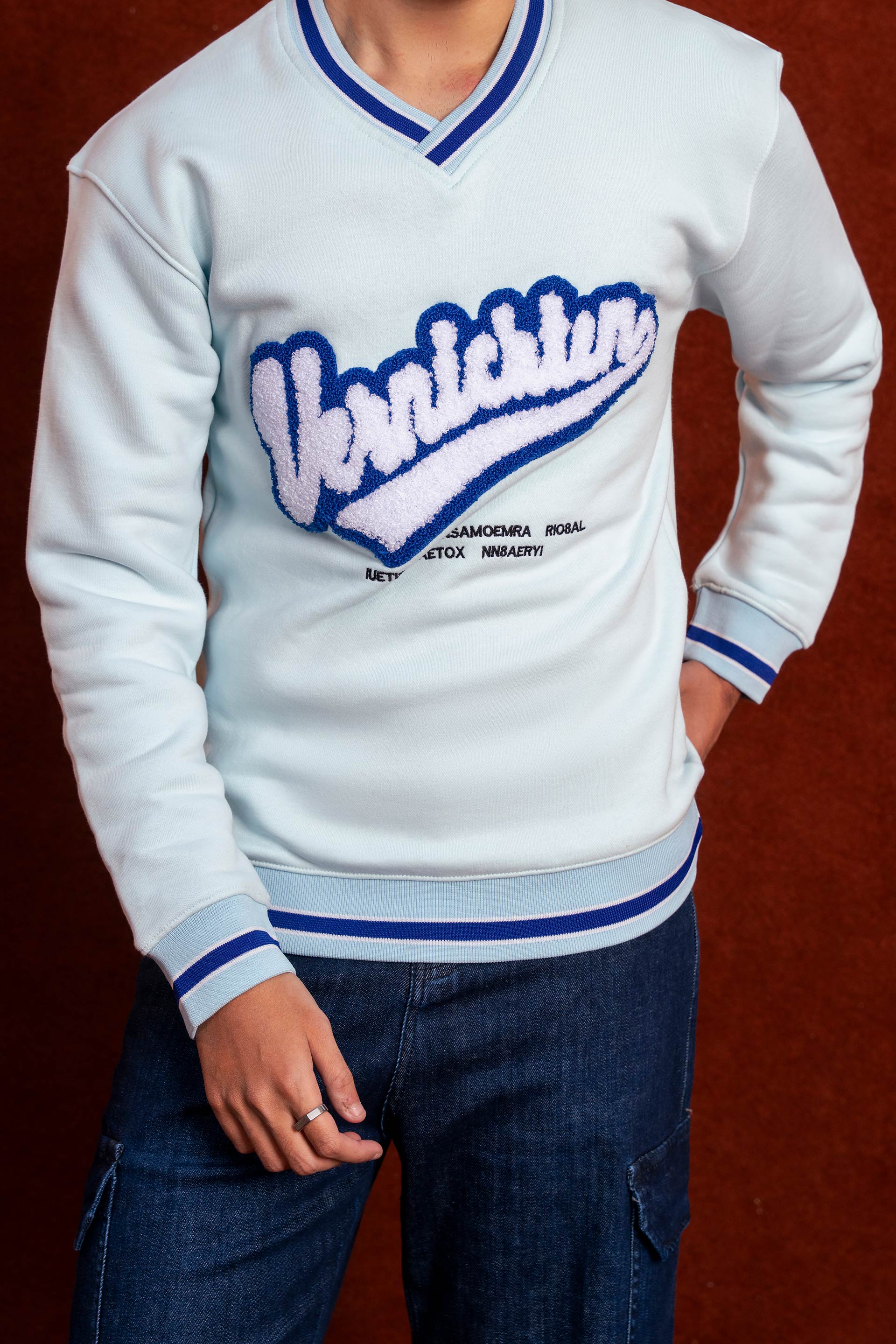 Elevate your casual game with this bold powder blue sweatshirt that refuses to blend in.